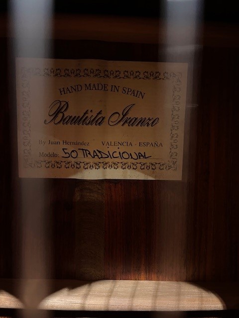 De gitaren van Bautista Iranzo vallen onder het gitarenarsenaal van Guitarras Juan Hernandez en worden handgemaakt in Spanje (Valencia).