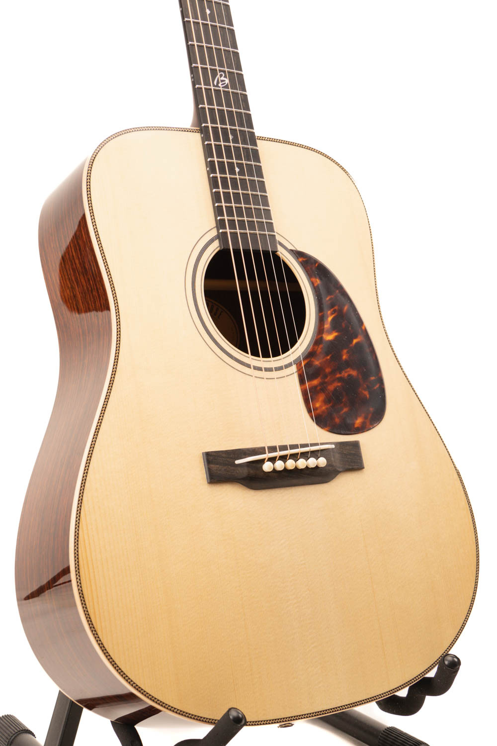 De Boucher BG-52-I is met zorg ontworpen en ontwikkeld om te voldoen aan de zeer hoge eisen van bluegrassgitaristen, zowel live als in de opnamestudio. Dankzij de constructie en de houtsoorten die gebruikt zijn, heeft dit type akoestische gitaar een krachtige podiumpresentatie. De BG-52 is net zo prominent aanwezig als alle andere bluegrassinstrumenten, of je nu tokkelt of solo speelt.