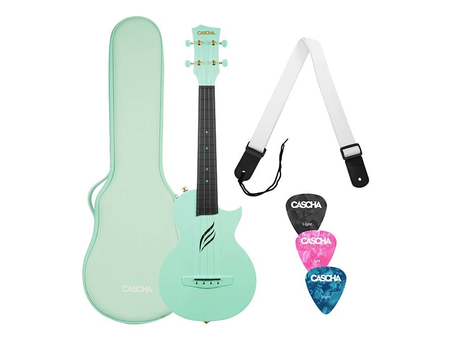Deze stijlvolle mintgroene Cascha Ukelele is gemaakt van bestendig carbon. Polycarbonaat is een stevig, hard en helder materiaal dat in tegenstelling tot de meeste andere kunststoffen hoge temperaturen kan weerstaan. De ukelele's zijn zeer stemvast en klinken super! Tevens zorgt carbon ervoor dat de ukelele makkelijk schoon te houden is en je het overal mee naar toe kunt nemen!