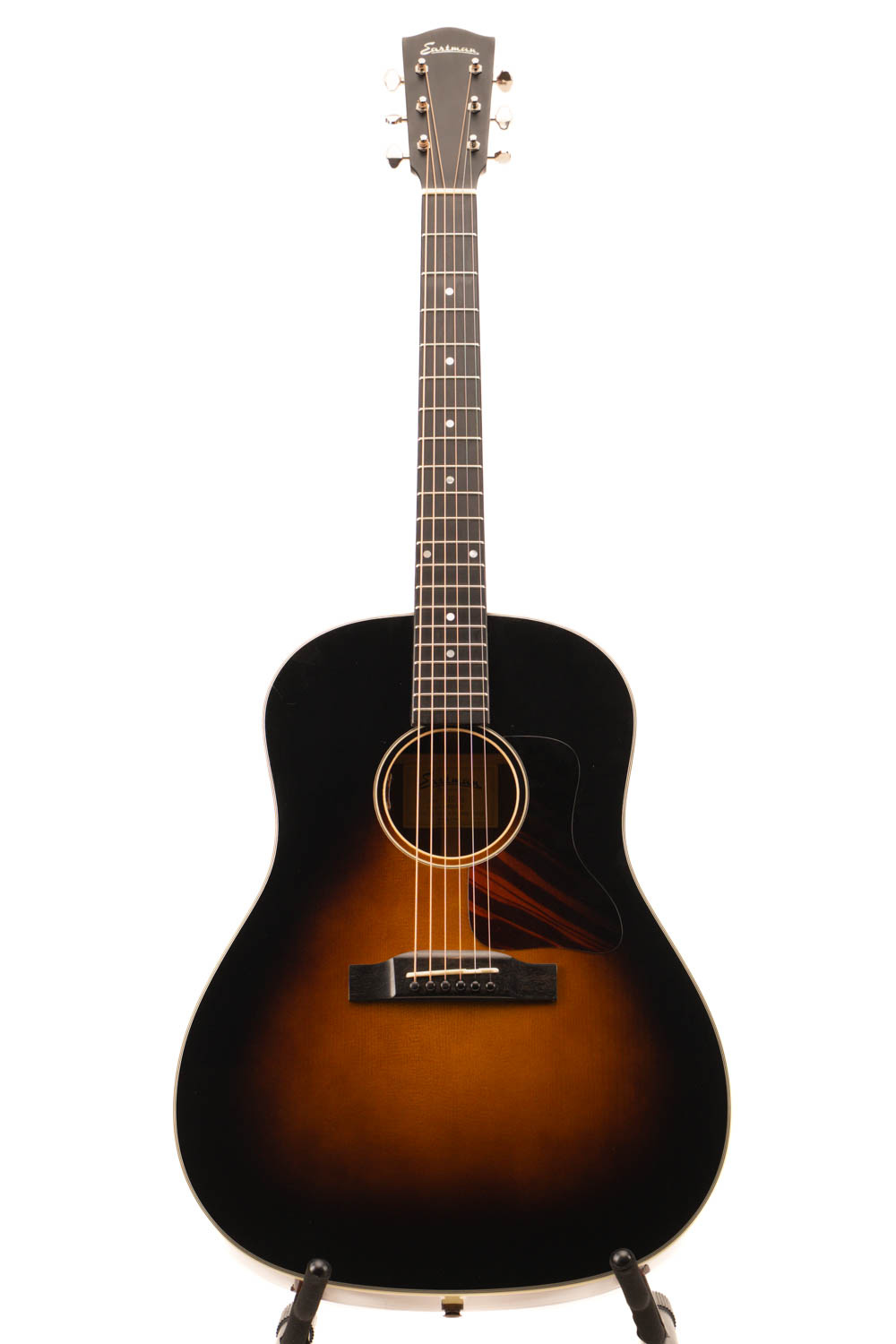 De Eastman E10SS is een topklasse slope-shoulder dreadnought die vintage charme koppelt aan krachtige allround prestaties. Met zijn massieve Adirondack sparren bovenblad en volle mahonie zij- en achterkant levert hij een warme, gelaagde klank: rijk in de middentonen, stevig in de bass en helder in de hoge snaren. Of je nu stevig aan het flatpicken bent, ritme vraagt of solo’s wilt spelen, de E10SS biedt volume, resonantie en nuance.