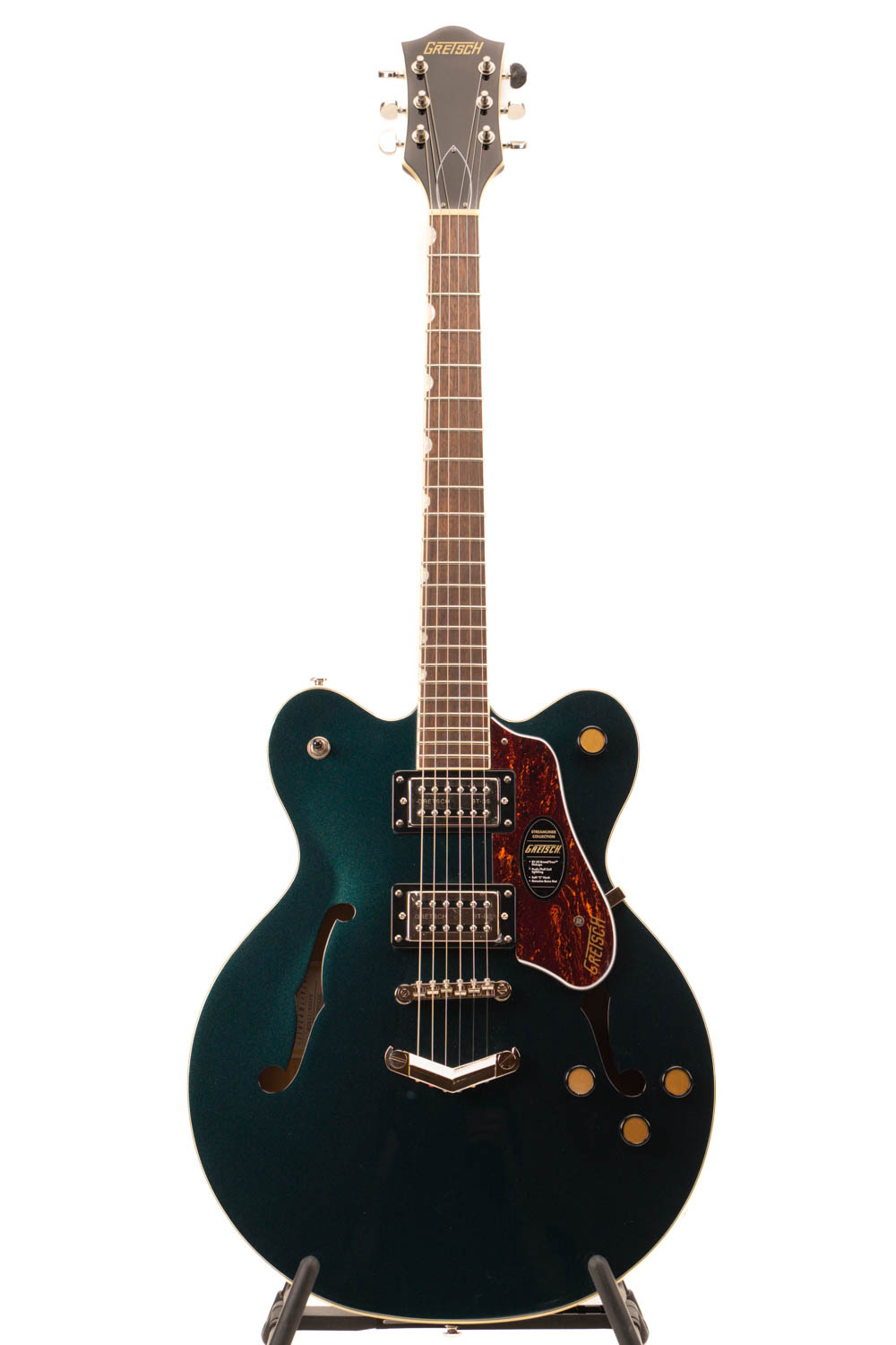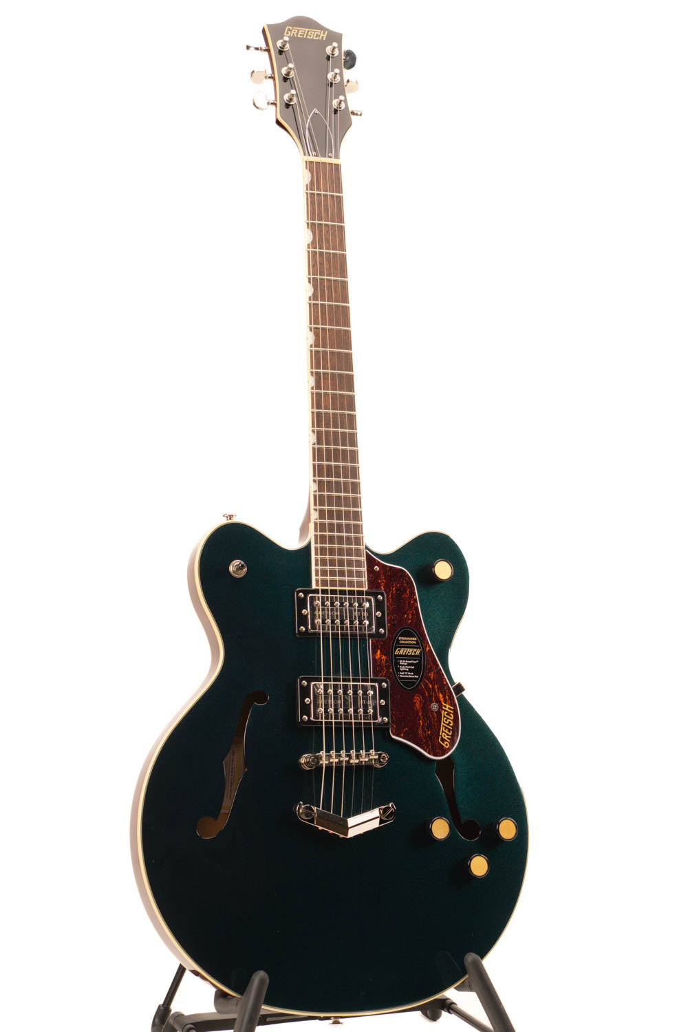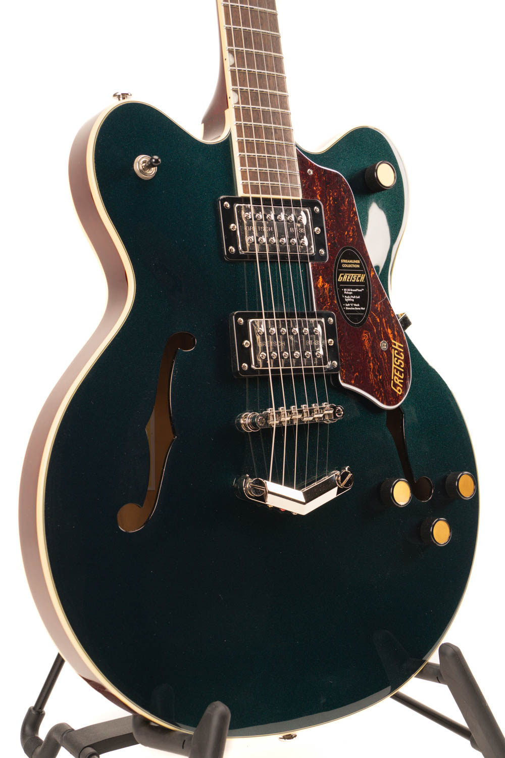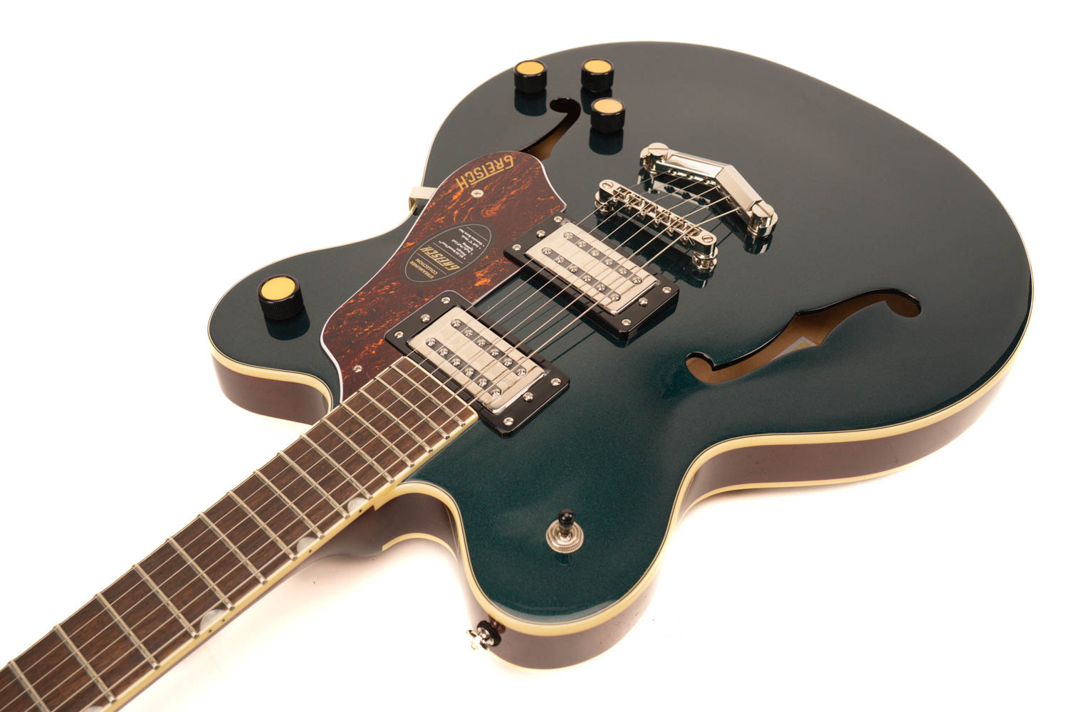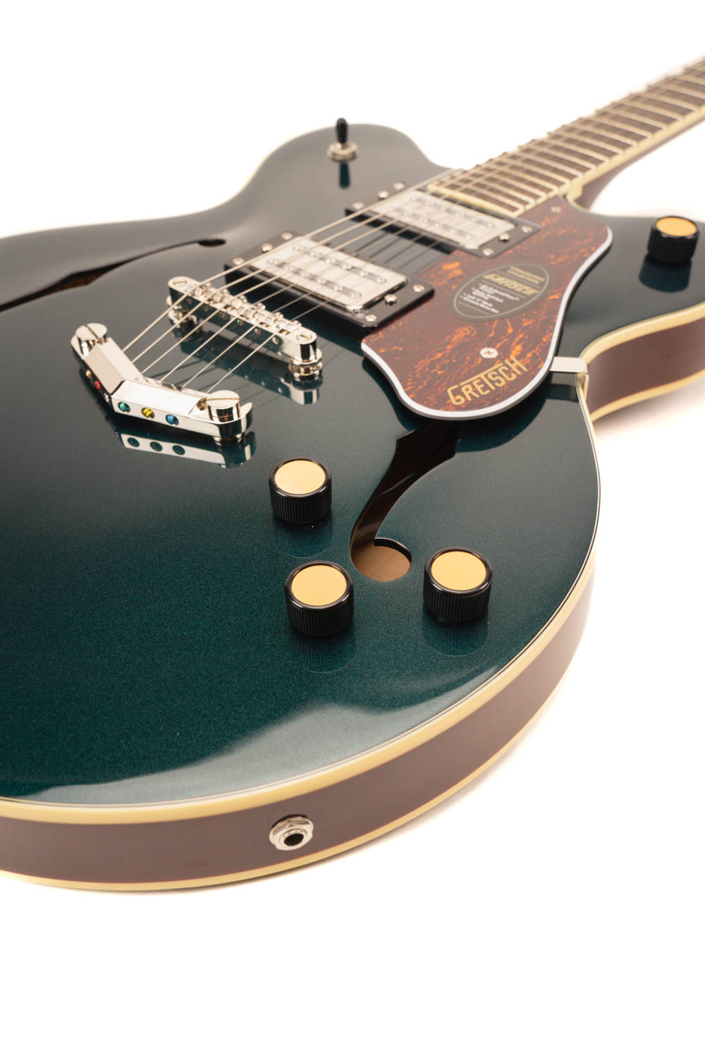 - Midnight Sapphire hoogglans afwerking met aged witte binding – Klassieke Gretsch-uitstraling met een moderne touch.