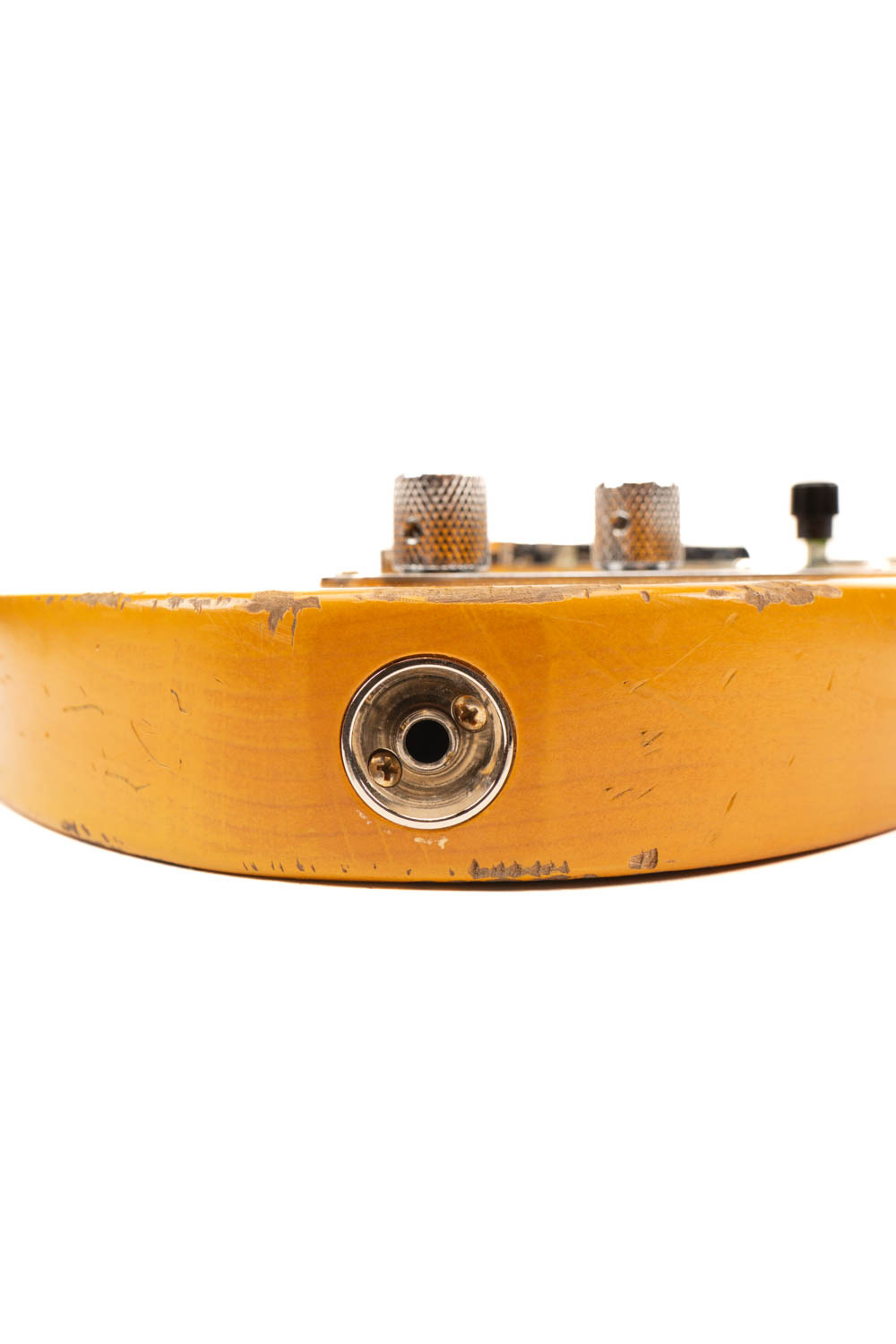 de gitaar heeft een relic gehad hier door oogt de gitaar veroudert.