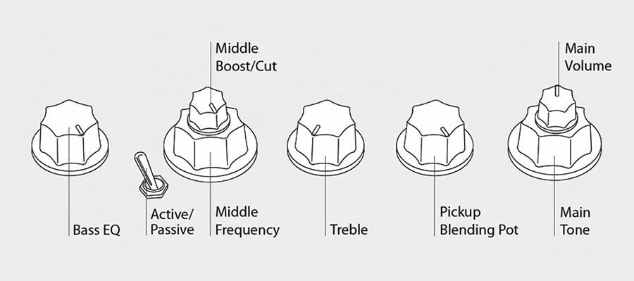 | controls | volume/tone (dual pot) pickup blender treble middle/middle frequency (dual pot) bass mini toggle (active/passive) |