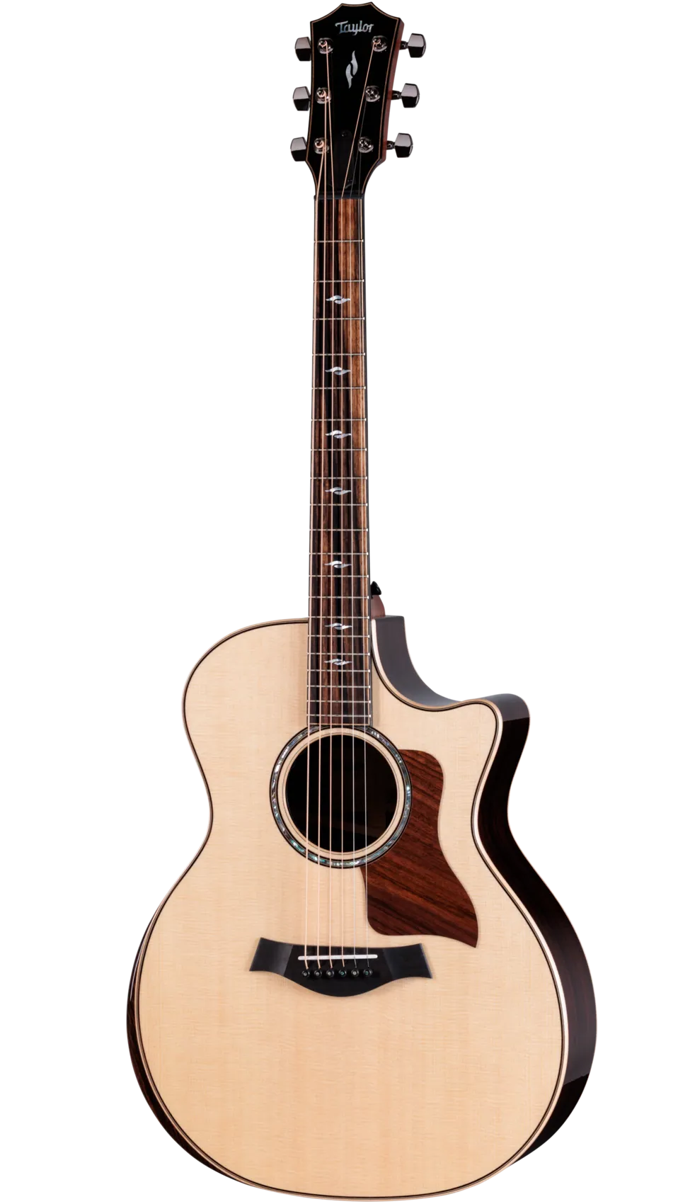 Met een lange geschiedenis van inspiratie voor gitaristen in diverse genres en stijlen, presenteert Taylor's vlaggenschip Grand Auditorium nu nog meer op de speler gerichte designelementen. Dit model is voorzien van de geliefde combinatie van Indisch palissander en Sitka-sparrenhout, wat resulteert in een weelderig boventoonprofiel dat de helderheid in het hoog en een rijk basbereik perfect aanvult.