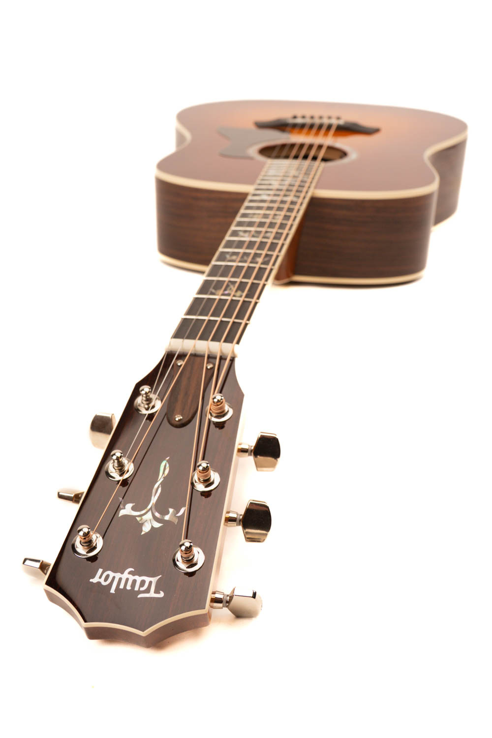 Verbeterd comfort: De handvriendelijke mensuur van 24 7/8 inch, een lengte die af en toe ook bij eerdere Taylor dreadnoughts voorkwam, zorgt voor een iets soepeler gevoel in de hand, waardoor het indrukken van de snaren gemakkelijker gaat zonder dat dit ten koste gaat van de klankrijkdom.