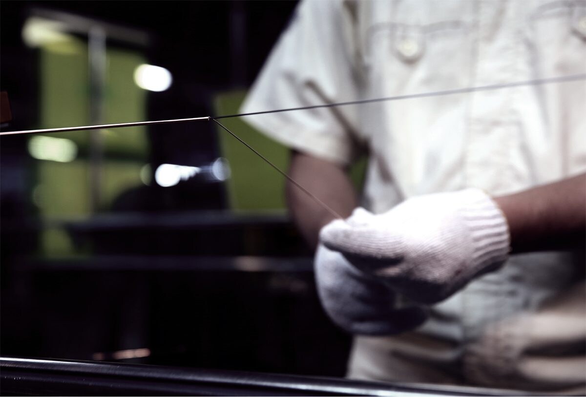 De bassnaren van deze vleugel worden stuk voor stuk met de hand gewikkeld door gespecialiseerde ambachtslieden. Hoogwaardig koperdraad wordt zorgvuldig om een stalen kern gewonden, wat resulteert in een basregister dat krachtig en helder blijft, zonder troebelheid.